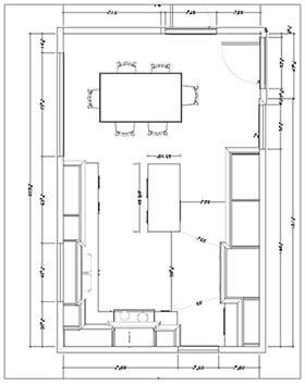 The original layout was a "U" shape, which only allowed one way in and out of the kitchen. This caused congestion and needed to be addressed. We concluded that placing an island in the kitchen would open up the space and allow better flow around the room. Our challenge was the kitchen wasn't wide enough for "standard" depth cabinets and island, so we designed the space with a wall of very attractive pantries that were shallow (aprox. 20" deep instead of 24"), which allowed us to place a decorative accent island in the middle. The island still needed to be sized properly to allow proper flow within the kitchen and around the major appliances.